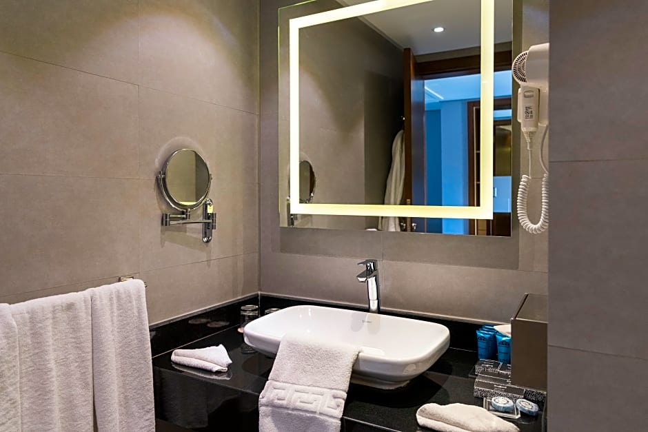 Double Superior Side Sea View is 377 square feet and includes either a king-size bed 150-183 width or 2 single beds 80-130 width plus balcony and terrace.