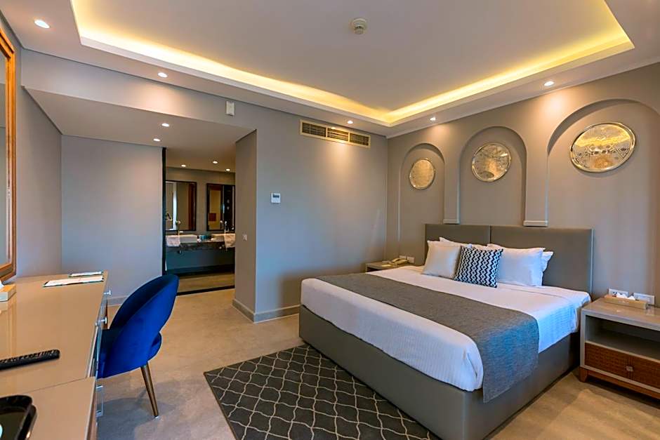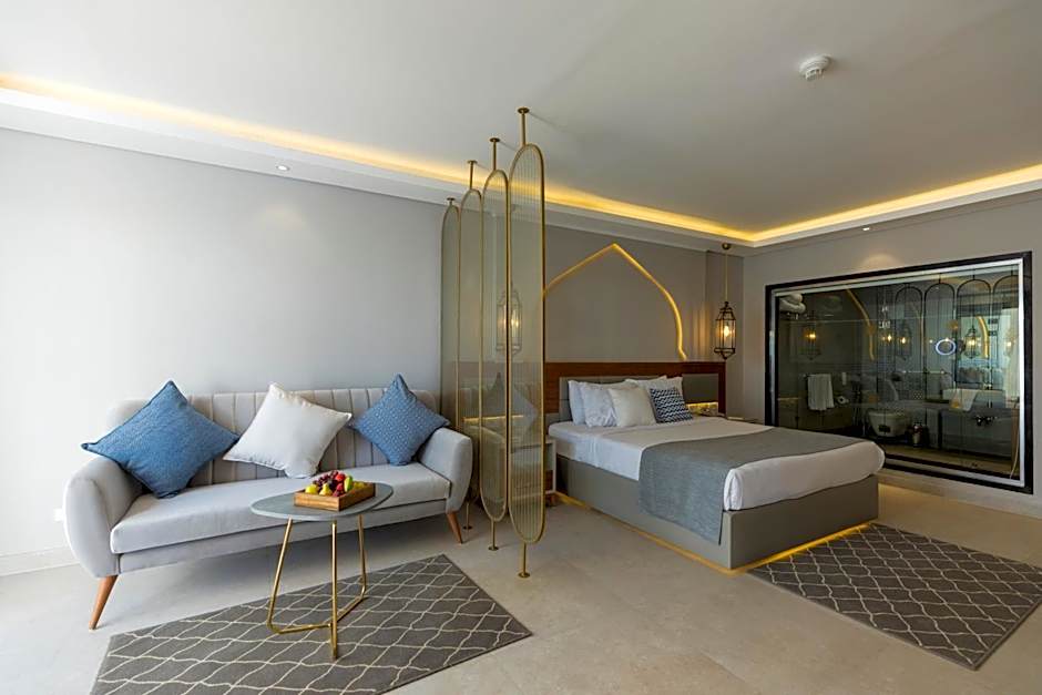 The room features a king size bed or twin beds, a seating area, a bathroom with a shower and a terrace or balcony. The room also offers free bathroom amenities, free WiFi, a satellite LED TV, a safe box, tea and coffee making facilities and a mini-bar.